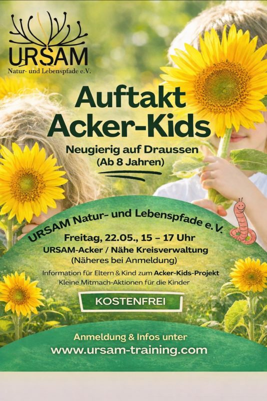 Zusammen mit Ihrem Kind laden wir Sie herzlich ein, am Freitag, 22.05.26 von 15 – 17 Uhr bei URSAM vorbeizukommen und den Acker zu entdecken.